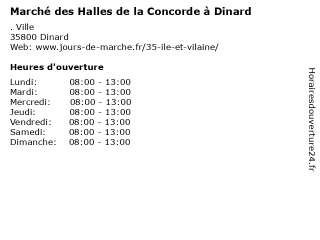 | Mercredi | 08:00-13:00 |