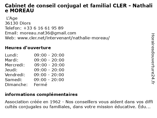 Termes de recherche pour Cabinet de conseil conjugal et familial CLER - Nathalie MOREAU:et, de, cabinet, conseil, moreau, nathalie, familial, cler, conjugal |