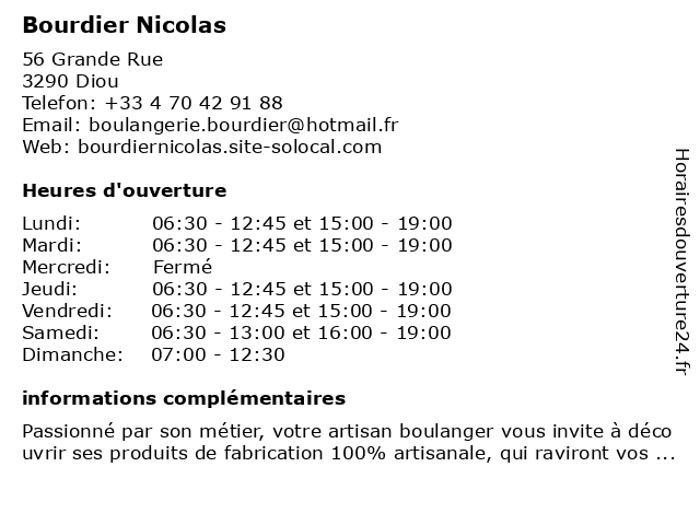 | Samedi | 06:30-13:00 et 16:00-19:00 |