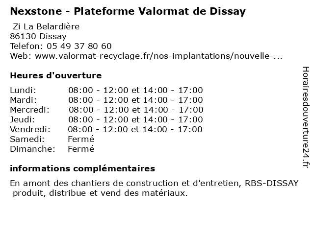 Termes de recherche pour Nexstone - Plateforme Valormat de Dissay:de, plateforme, dissay, valormat, fournisseur de matériaux pour le bâtiment, nexstone |