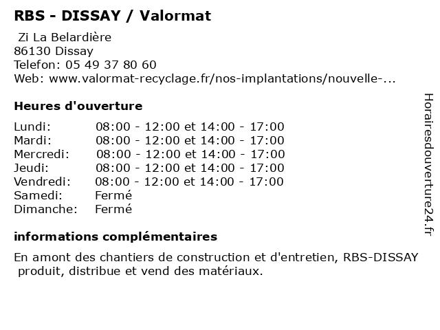 Termes de recherche pour RBS - DISSAY / Valormat:dissay, rbs, valormat, fournisseur de matériaux pour le bâtiment |