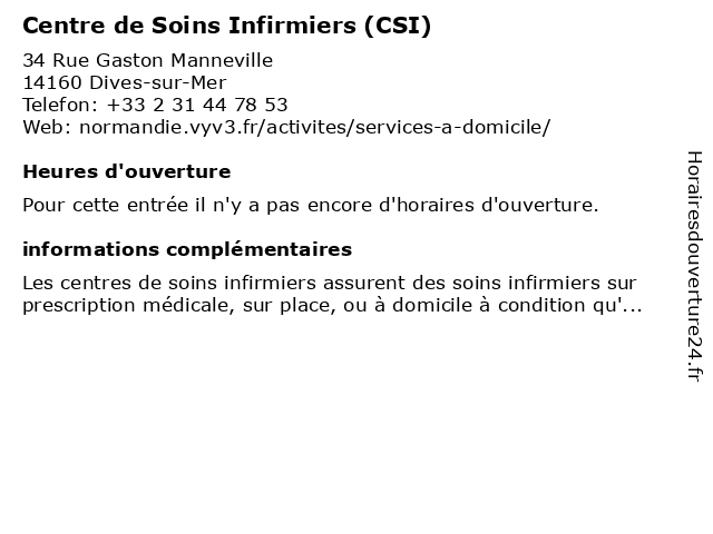 | Appeler Centre de Soins Infirmiers (CSI) | |