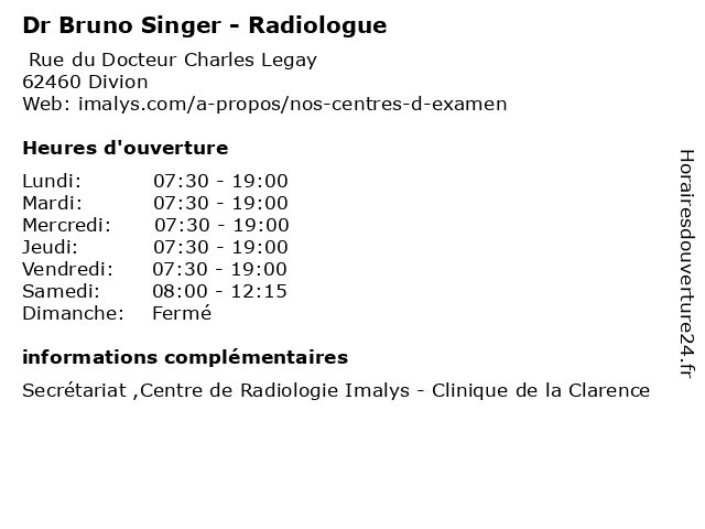 1 Dr Bruno Singer - Radiologue (Distance: 4,02 km) 90 Rue Roger Salengro, 62700 Bruay-la-Buissière bruno, consultation, docteur, dr, med, médecin, médecine, radiologue, singer, traitement 2 Dr Bruno Singer - Radiologue (Distance: 9,07 km) 60 bis Rue de Verdun, 62190 Lillers bruno, consultation, docteur, dr, med, médecin, médecine, radiologue, singer, traitement 3 Dr Bruno Singer - Radiologue (Distance: 12,15 km) 100 boulevard Basly, 62400 Béthune bruno, consultation, docteur, dr, med, médecin, médecine, radiologue, singer, traitement 4 Dr Bruno Singer - Radiologue (Distance: 13,42 km) 880 Rue Delbecque, 62660 Beuvry bruno, dr, médecin, médecine, médical, pharmaceutique, radiologue, secretariat, singer, traitement 5 Maître Bruno Dubout - Avocat (Distance: 12,38 km) 230 Place Lamartine, 62400 Bethune avocat, avocats, bruno, civils, droits, dubout, juridiques, maître 6 Dr Bruno Fruchart - Cardiologue (Distance: 12,80 km) - Rue de l'Université, 62400 Verquigneul bruno, cardiologie, cardiologue, consultation, docteur, dr, dr., fruchart, santé |