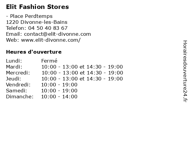 | Jeudi | 10:00-13:00 et 14:30-19:00 |