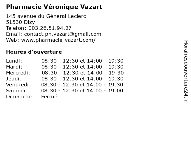 | Vendredi | 08:30-12:30 et 14:00-19:30 |