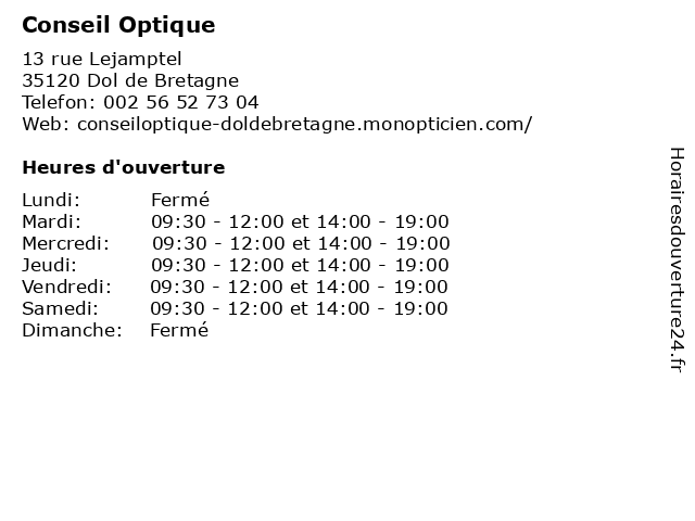 | Mardi | 09:30-12:00 et 14:00-19:00 |