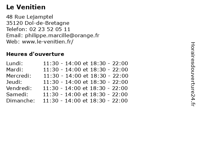 | Lundi | 11:30-14:00 et 18:30-22:00 |