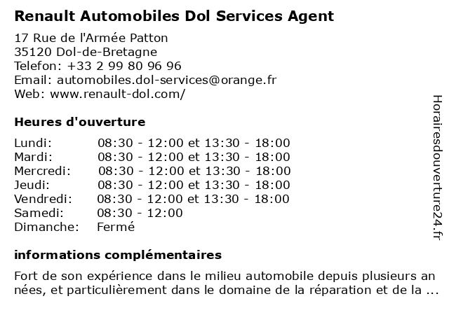 | Lundi | 08:30-12:00 et 13:30-18:00 |