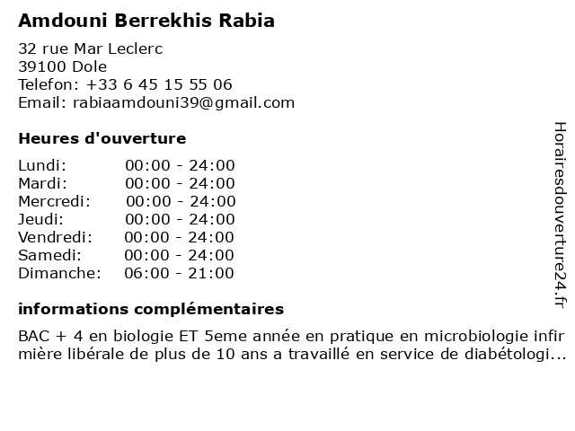 | Dimanche | 06:00-21:00 |