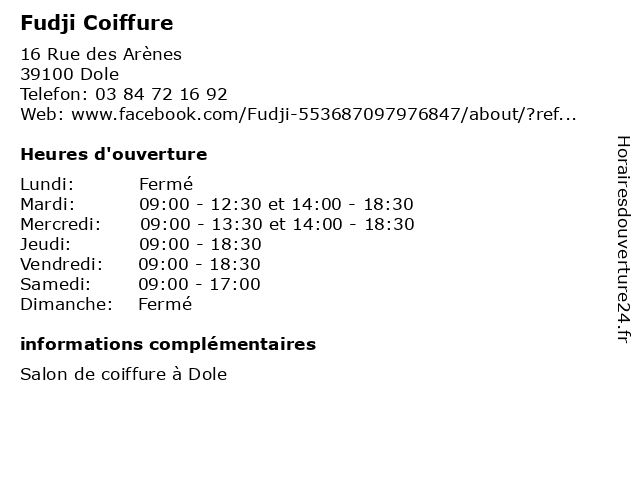 | Mercredi | 09:00-13:30 et 14:00-18:30 |