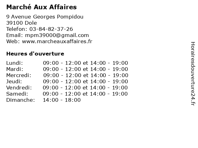 | Samedi | 09:00-12:00 et 14:00-19:00 |