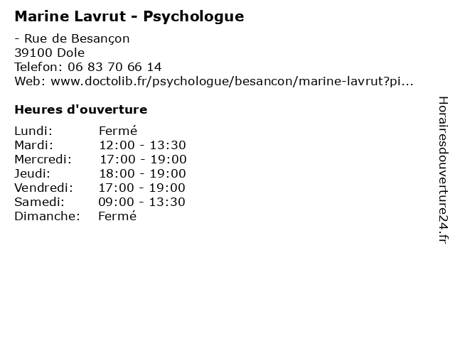 1 Dr Marine Bedat - Médecin généraliste (Distance: 3,66 km) 15 Rue Patot, 39100 Authume bedat, docteur, dr, generaliste, généraliste, marine, medical, médecin, soin 2 Dr Marine Gaillard - Psychiatre (Distance: 3,82 km) 120 Route Nationale, 39100 Dole consultation, docteur, dr, gaillard, marine, med, medecine, medical, médecin, psychiatre, traitement 3 Pharmacie Lavrut Dumon (Distance: 14,40 km) 11 bis Route de Dole, 39380 Mont-sous-Vaudrey dumon, lavrut, pharmacie 4 Rendez-Vous De La Marine (Distance: 17,00 km) Le Moulin Des Malades, 39700 Monteplain marine, rendez, restaurants 5 Picoty (Distance: 0,56 km) - des Frères Lumière, 39000 Dole bois, carborurant non routier, carburant marine, carburant routier, fioul, picoty 6 Picoty (Distance: 18,37 km) - Losne, 21170 St Jean De Losne bois, carborurant non routier, carburant marine, carburant routier, fioul, picoty |