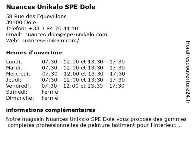 | Lundi | 07:30-12:00 et 13:30-17:30 |