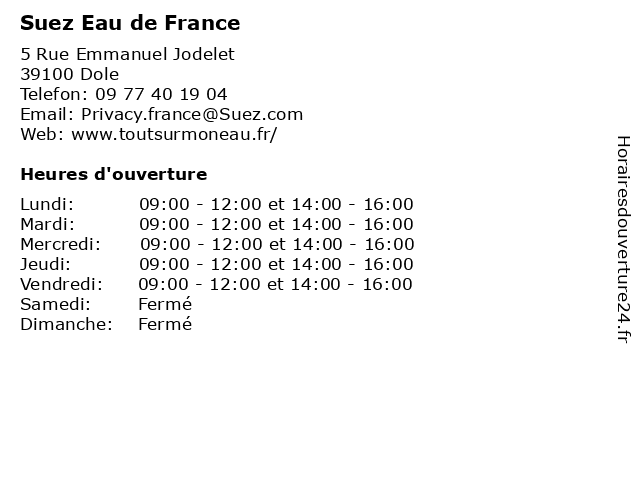 Termes de recherche pour Suez Eau de France:de, dole, france, distribution, eau, traitement, suez, captage |