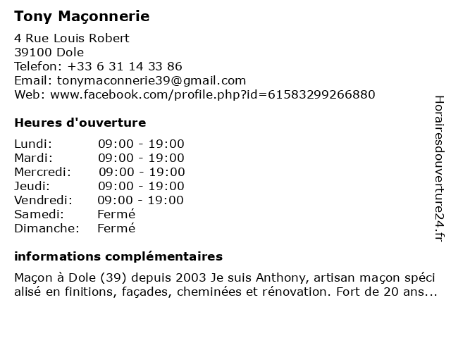 | Lundi | 09:00-19:00 |