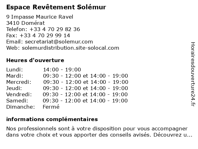 | Samedi | 09:30-12:00 et 14:00-19:00 |