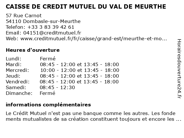 Termes de recherche pour CAISSE DE CREDIT MUTUEL DU VAL DE MEURTHE:val, du, de, meurthe, crédit, mutuel, caisse |