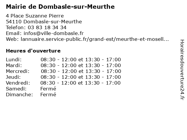 | Lundi | 08:30-12:00 et 13:30-17:00 |