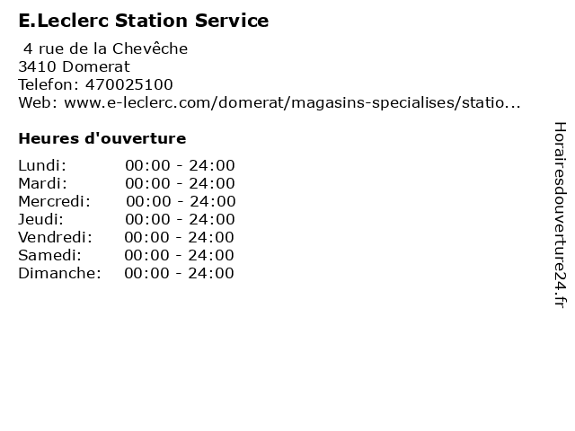 | 1 E.Leclerc Station Service (Distance: 0,01 km) 4 rue de la Cheveche, 03410 Domerat e.leclerc, fournisseur de gaz, fournisseur de gaz propane, service, station 2 E.Leclerc Station Service (Distance: 2,29 km) 26 Rue pierre villon, 03100 Montlucon e.leclerc, fournisseur de gaz, fournisseur de gaz propane, service, station 3 E.Leclerc Express (Distance: 0,01 km) 4 rue de la Cheveche, 03410 Domerat e.leclerc, express, supermarchés 4 E.Leclerc Express (Distance: 0,01 km) 4 Rue de la cheveche, 03410 Domerat e.leclerc, express, supermarchés 5 E.Leclerc Station-Service - Libre-Service (Distance: 0,02 km) 4 Rue de la Chevèche, 03410 Domerat e.leclerc, essence, libre, service, station, station-service 6 E.Leclerc Location (Distance: 0,10 km) 4 Rue de la Cheveche, 03410 Domerat automobile, e.leclerc, fourgon, leclerc, location, véhicule |