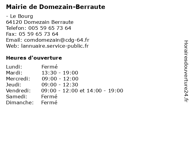 Termes de recherche pour Mairie de Domezain-Berraute:de, mairie, central, commune, berraute, domezain, gouvernement, nra |