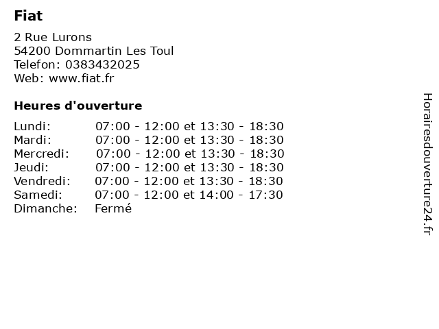 | Samedi | 07:00-12:00 et 14:00-17:30 |