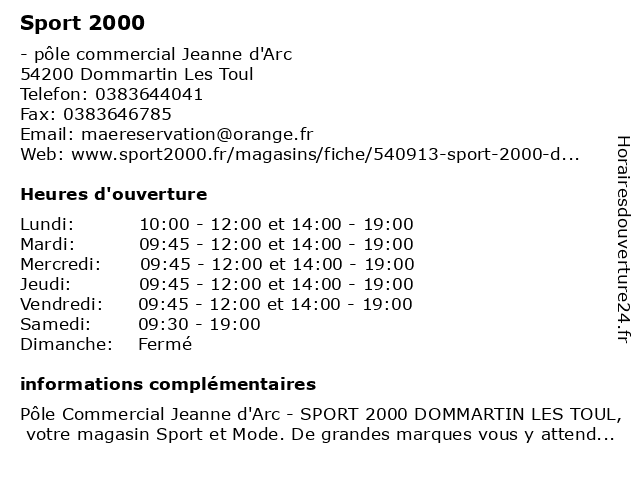 | Mercredi | 09:45-12:00 et 14:00-19:00 |
