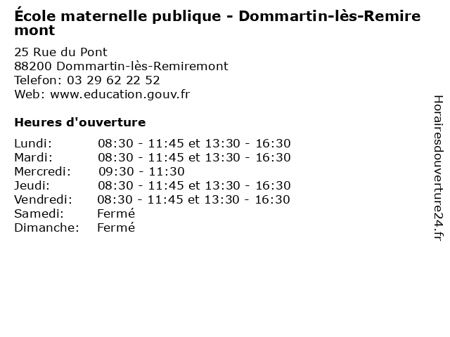 1 École primaire publique - Dommartin-lès-Remiremont (Distance: 0,00 km) 25 Rue du Pont, 88200 Dommartin-lès-Remiremont dommartin, ecole, education, lès, maternelle, primaire, publique, remiremont, services, école 2 École élémentaire publique jean-Philippe RameAU (Distance: 0,50 km) - de l'école, 21120 Gemeaux ecole, education, jean, maternelle, philippe, publique, rameau, services, école, élémentaire 3 École primaire publique - Saint-Amé (Distance: 0,83 km) 7 Rue de l'Église, 88120 Saint-Amé amé, ecole, education, maternelle, primaire, publique, saint, services, école 4 École maternelle publique - Saint-Amé (Distance: 0,83 km) 7 Rue de l'Église, 88120 Saint-Amé amé, ecole, education, maternelle, publique, saint, services, école 6 École Maternelle Publique (Distance: 1,58 km) 89 Grande rue, 88120 Saint-Ame cours, education, maternelle, publique, services, École, école |