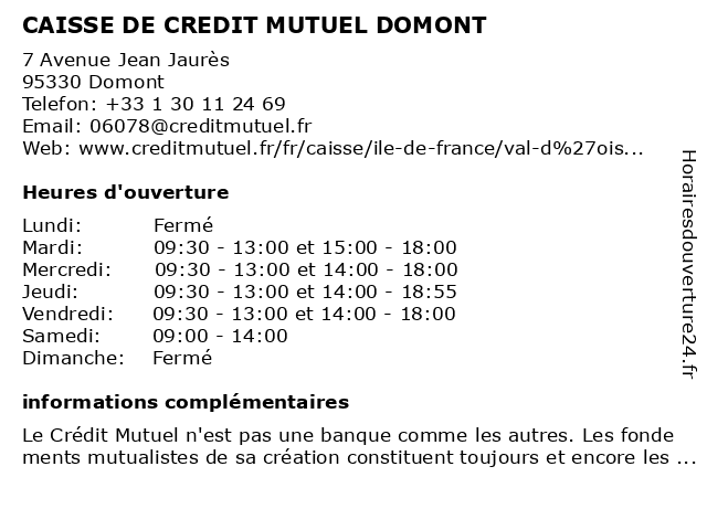 Termes de recherche pour CAISSE DE CREDIT MUTUEL DOMONT:de, crédit, mutuel, caisse, domont |