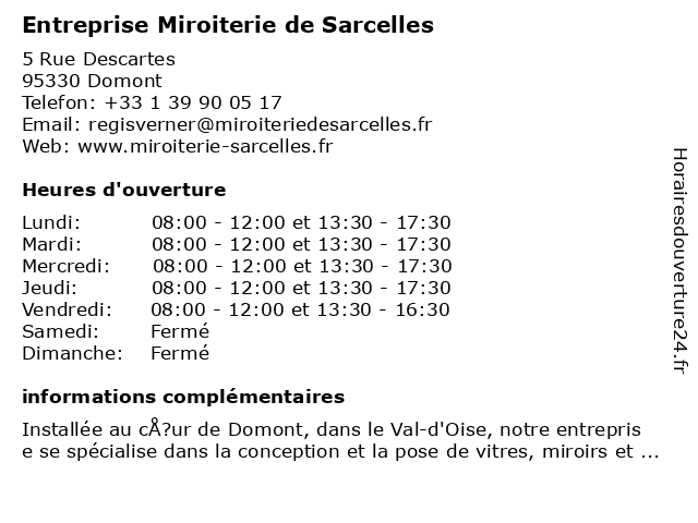| Lundi | 08:00-12:00 et 13:30-17:30 |