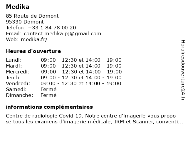 1 Medika (Distance: 16,75 km)19 Avenue Eglé, 78600 Maisons-Laffitte medika