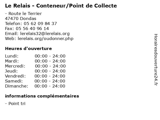 Termes de recherche pour Le Relais - Conteneur/Point de Collecte:relais, le, de, vêtements, point, collecte, dons, conteneur/point |