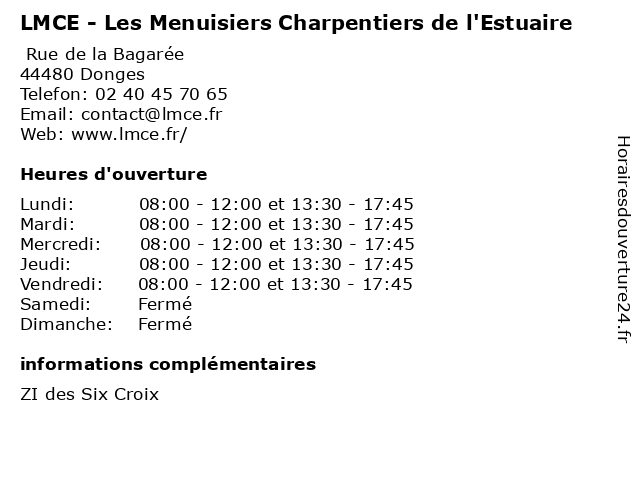 | Vendredi | 08:00-12:00 et 13:30-17:45 |