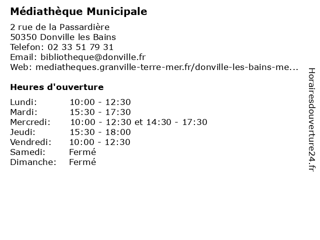 | Mercredi | 10:00-12:30 et 14:30-17:30 |