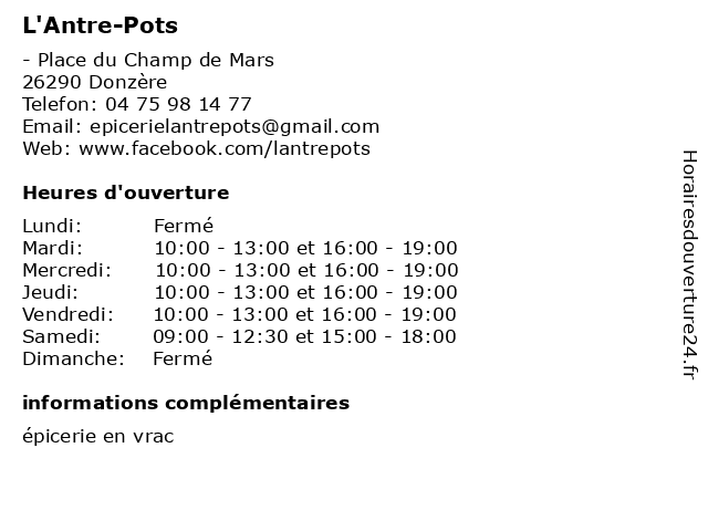 Termes de recherche pour L'Antre-Pots:alimentation, épicerie, bio, vrac, pots, local, l'antre |