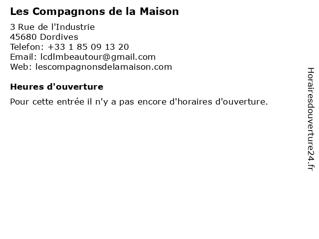 1 Les Compagnons du Loiret - LCL (Distance: 16,78 km) 53 rue du Général Leclerc, 45200 Montargis agence, compagnons, du, dépannage, lcl, les, loiret, plomberie, serrure, urgence 2 Les Compagnons de Melun (Distance: 44,03 km) 3 Rue du Franc Mûrier, 77000 Melun compagnons, de, les, melun 3 Compagnons Et Environnement (Distance: 54,13 km) 22 Rue de Gerofosse, 91150 Étampes compagnons, environnement, et 4 LES COMPAGNONS DE COUVERTURE CAZENEUVE (Distance: 59,19 km) 16 Rue Jacques Tati, 91080 Évry-Courcouronnes cazeneuve, compagnons, couverture, de, les 5 Maison des Jeunes (MDJ) - Périodes Scolaires (Distance: 0,33 km) 3 Rue Pasteur, 45680 Dordives activités, centre, culturel, des, jeunes, loisirs, maison, mdj, période, périodes, scolaire, scolaires 6 Maison des Jeunes (MDJ) - Vacances Scolaires (Distance: 0,33 km) 3 Rue Pasteur, 45680 Dordives activités, centre, culturel, des, jeunes, loisirs, maison, mdj, scolaires, vacances |
