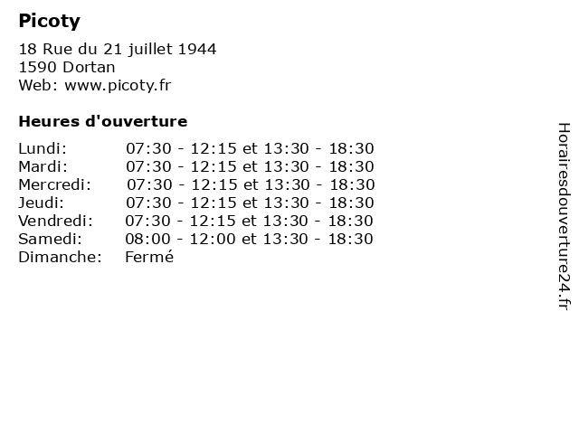 | Lundi | 07:30-12:15 et 13:30-18:30 |