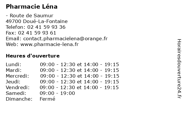Lundi | 09:00-12:30 et 14:00-19:15 |