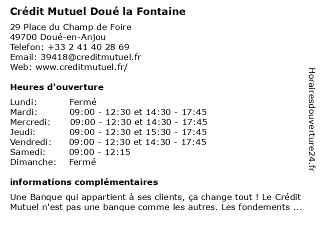 Termes de recherche pour Crédit Mutuel Doué la Fontaine:la, doue, fontaine, crédit, mutuel |