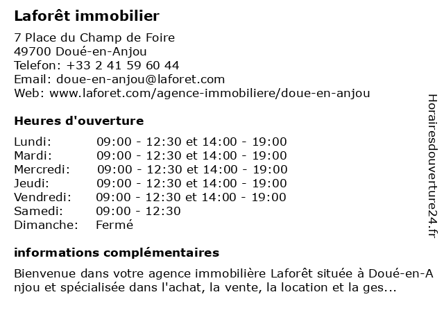 | Lundi | 09:00-12:30 et 14:00-19:00 |