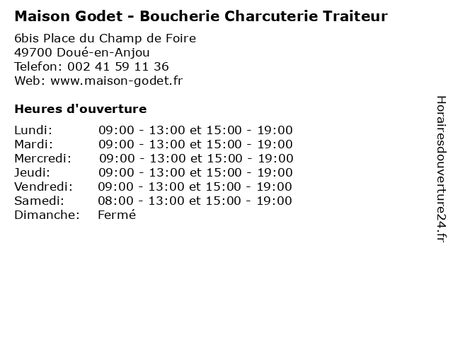 Termes de recherche pour Maison Godet - Boucherie Charcuterie Traiteur:alimentation, commerce, maison, boucherie, traiteur, boucher, viandes, charcuterie, charcutier, godet, doué-en-anjou |