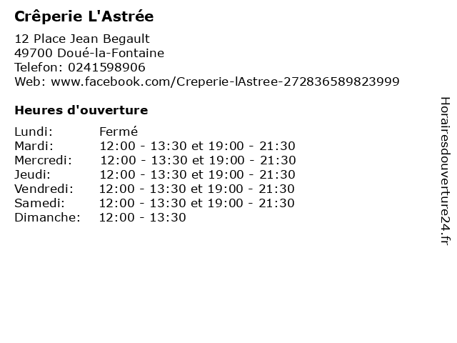 Termes de recherche pour Crêperie L'Astrée:restauration, restaurant, café, bar, bistrot, brasserie, crêperie, crepes, bistro, l'astrée |