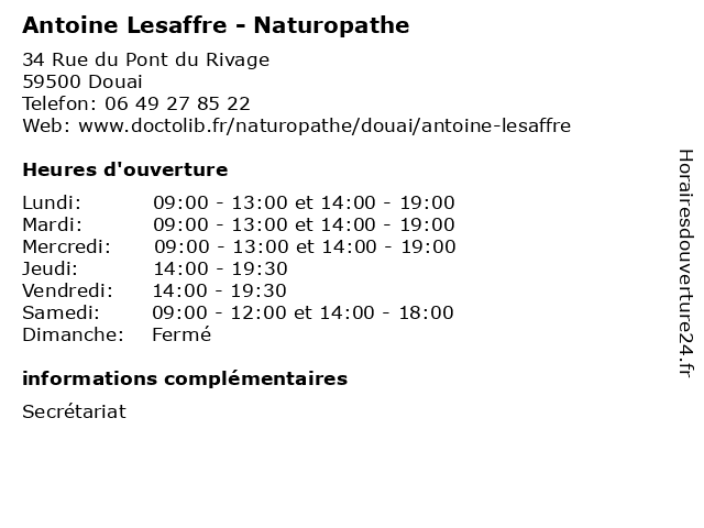 | Mardi | 09:00-13:00 et 14:00-19:00 |