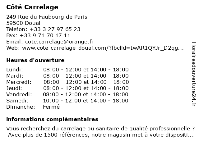 | Samedi | 10:00-12:00 et 14:00-18:00 |