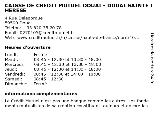 Termes de recherche pour CAISSE DE CREDIT MUTUEL DOUAI - DOUAI SAINTE THERESE:sainte, de, douai, crédit, mutuel, caisse, thérèse |