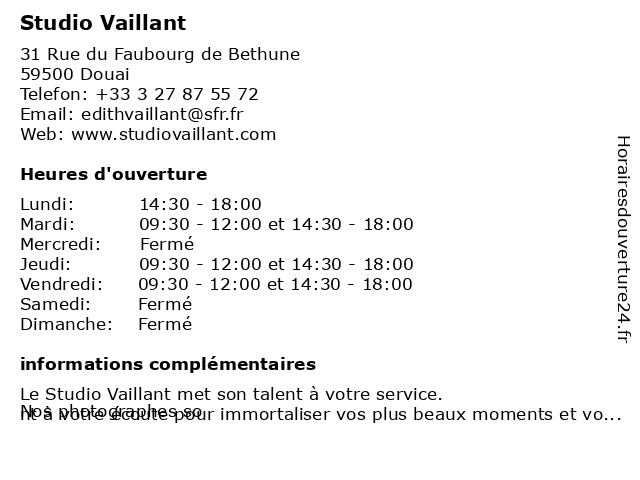 | Vendredi | 09:30-12:00 et 14:30-18:00 |
