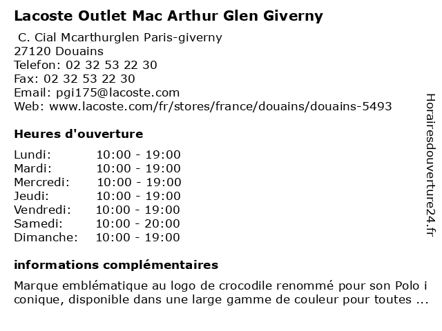 1 Nike Factory Store Giverny (Distance: 0,04 km) Avenue Du Capitaine Vandière De Vitrac, 27120 DOUAINS factory, giverny, magasin de chaussures, magasin de vêtements pour enfants, magasin de vêtements pour femmes, magasin de vêtements pour hommes, mode, nike, store 2 Kusmi Tea | McArthurGlen | Giverny (Distance: 0,01 km) Mcarthurglen Designer Outlet Paris Giverny, 27120 DOUAINS boutique de cadeaux, giverny, kusmi, mcarthurglen, tea 3 Polo Ralph Lauren Magasin d'usine Paris-Giverny (Distance: 0,01 km) Mcarthur Glen Paris Giverny, 27120 Douains d'usine, giverny, lauren, magasin, magasin de vêtements pour femmes, magasin de vêtements pour hommes, magasin d’accessoires de mode, magasin outlet, paris, polo, ralph 4 ZWILLING STAUB Outlet | McArthurGlen Giverny (Distance: 0,03 km) Avenue du Capitaine Vandière de Vitrac, 27120 Douains giverny, mcarthurglen, outlet, staub, zwilling 5 Designer Outlet Paris-Giverny (Distance: 0,04 km) Av. Du Capitaine Vandière De Vitrac, 27120 Douains designer, giverny, magasin de vêtements de sport, magasin de vêtements pour enfants, magasin de vêtements pour femmes, magasin de vêtements pour hommes, mode, outlet, paris, restaurants 6 Five Guys Burgers and Fries Giverny MacArthurGlen Outlet (Distance: 0,15 km) Mcarthur Glen 1 Avenue Du Treizième Dragon Centre, 27120 Douains and, burgers, fast-food, five, fries, giverny, guys, macarthurglen, outlet, restaurant américain, restaurant de hot dogs, restaurant à emporter, restaurants |
