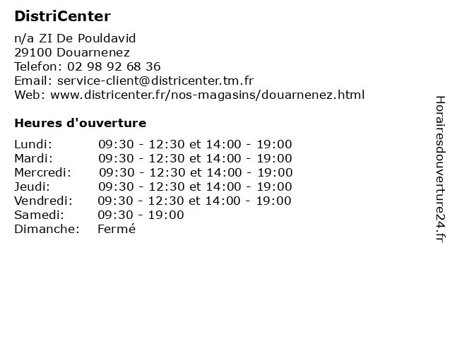 | Mercredi | 09:30-12:30 et 14:00-19:00 |