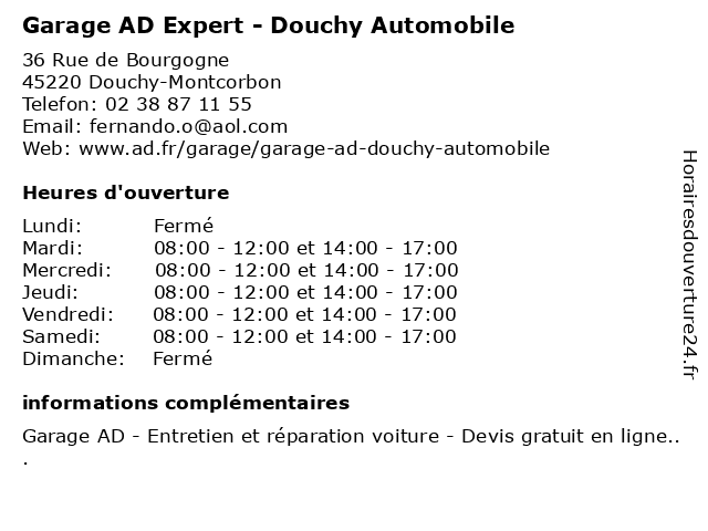 | Lundi | Fermé |