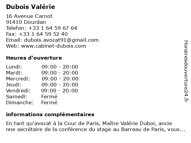 2 Maître Valérie Dubois - Avocate (Distance: 0,29 km) 15 Rue Debertrand, 91410 Dourdan avocate, avocats, civils, droits, dubois, juridiques, maître, valérie 3 Valérie Vecciani - Psychologue (Distance: 10,98 km) 10 Rue de Predecelle, 91640 Vaugrigneuse psy, psychiatre, psychologue, sante, soins, valérie, vecciani 4 Valérie Favrot - Masseur-kinésithérapeute (Distance: 14,01 km) - Rue de Bligny, 91640 Briis-sous-Forges consultation, docteur, favrot, kinésithérapeute, masseur, med, médecin, traitement, valerie, valérie 5 Dr Valérie Beaslay - Médecin généraliste (Distance: 14,01 km) - Rue de Bligny, 91640 Briis-sous-Forges beaslay, consultation, docteur, dr, généraliste, med, médecin, traitement, valerie, valérie 6 Dr Valérie Mach - Médecin généraliste (Distance: 14,01 km) - Rue de Bligny, 91640 Briis-sous-Forges consultation, docteur, dr, généraliste, mach, med, médecin, traitement, valerie, valérie |