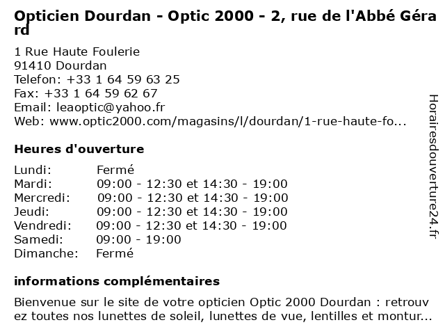 Termes de recherche pour Opticien Dourdan - Optic 2000 - 2, rue de l'Abbé Gérard:de, rue, opticien, lunettes de soleil, optic2000, 2000, optic, gérard, lentilles de contact, l'abbé, dourdan, lunettes de vue, opticien optic2000, ray-ban, rayban |